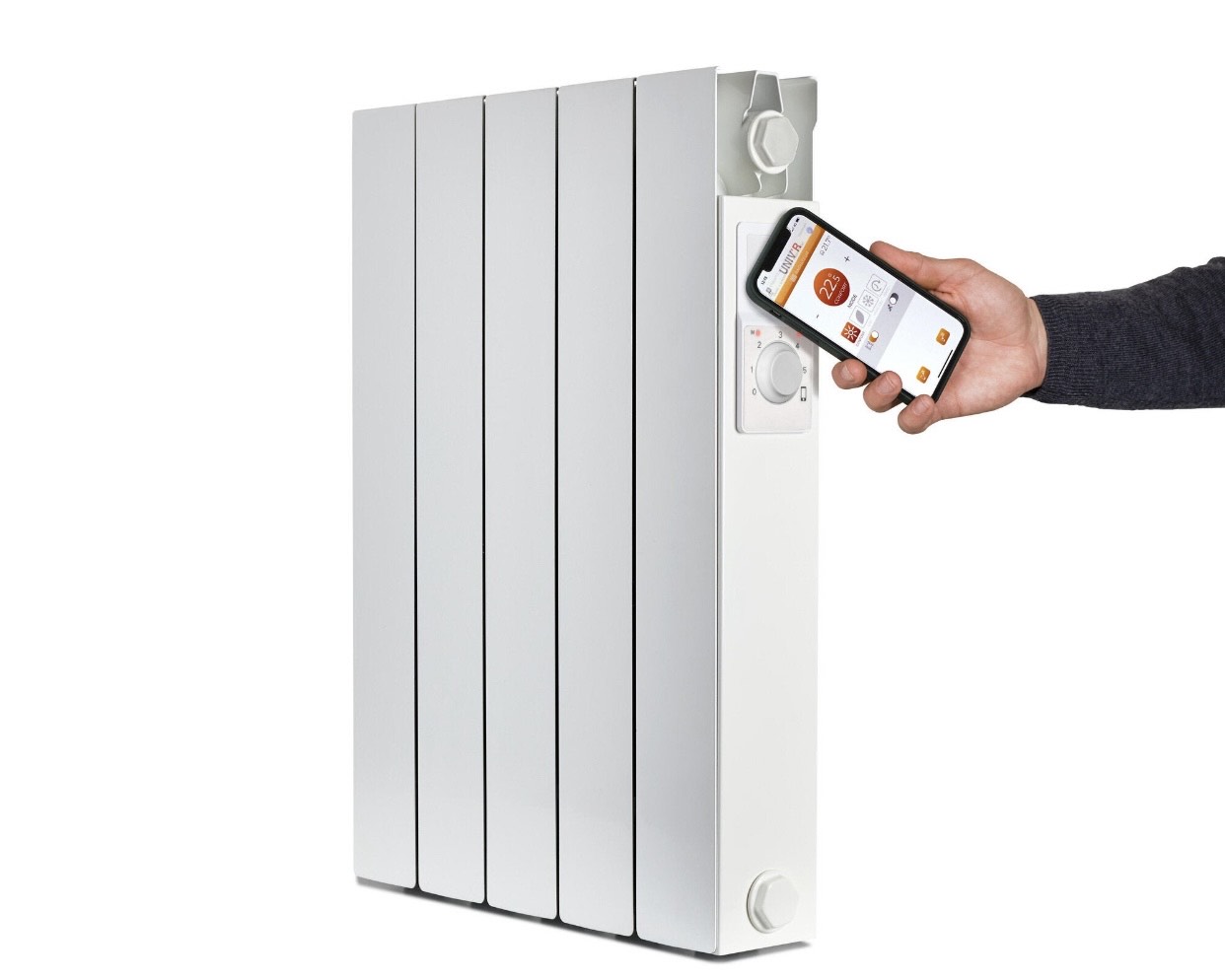 Type : inertie sèche céramique connectée (pilotage via smartphone NFC / appli).